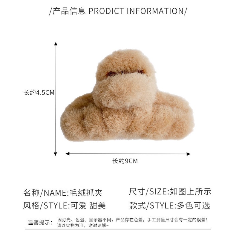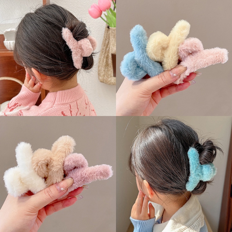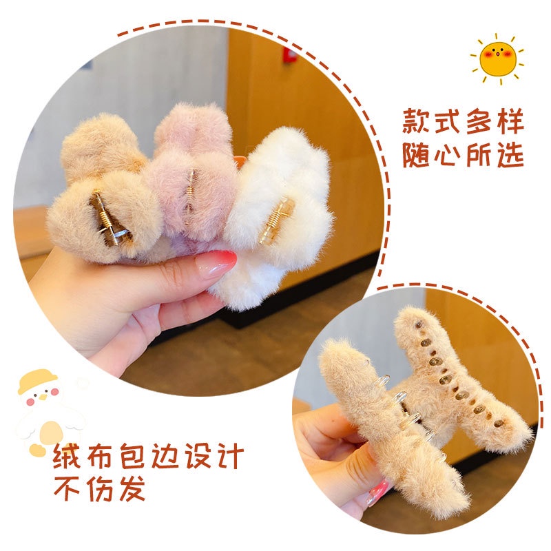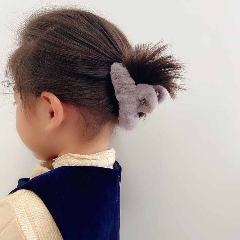 儿童毛绒发夹 Kid's Plush Hair Clips Hairpin Back Head Small Shark Clip Korean Solid Color Small Plush Grab Clip Hair Accessories