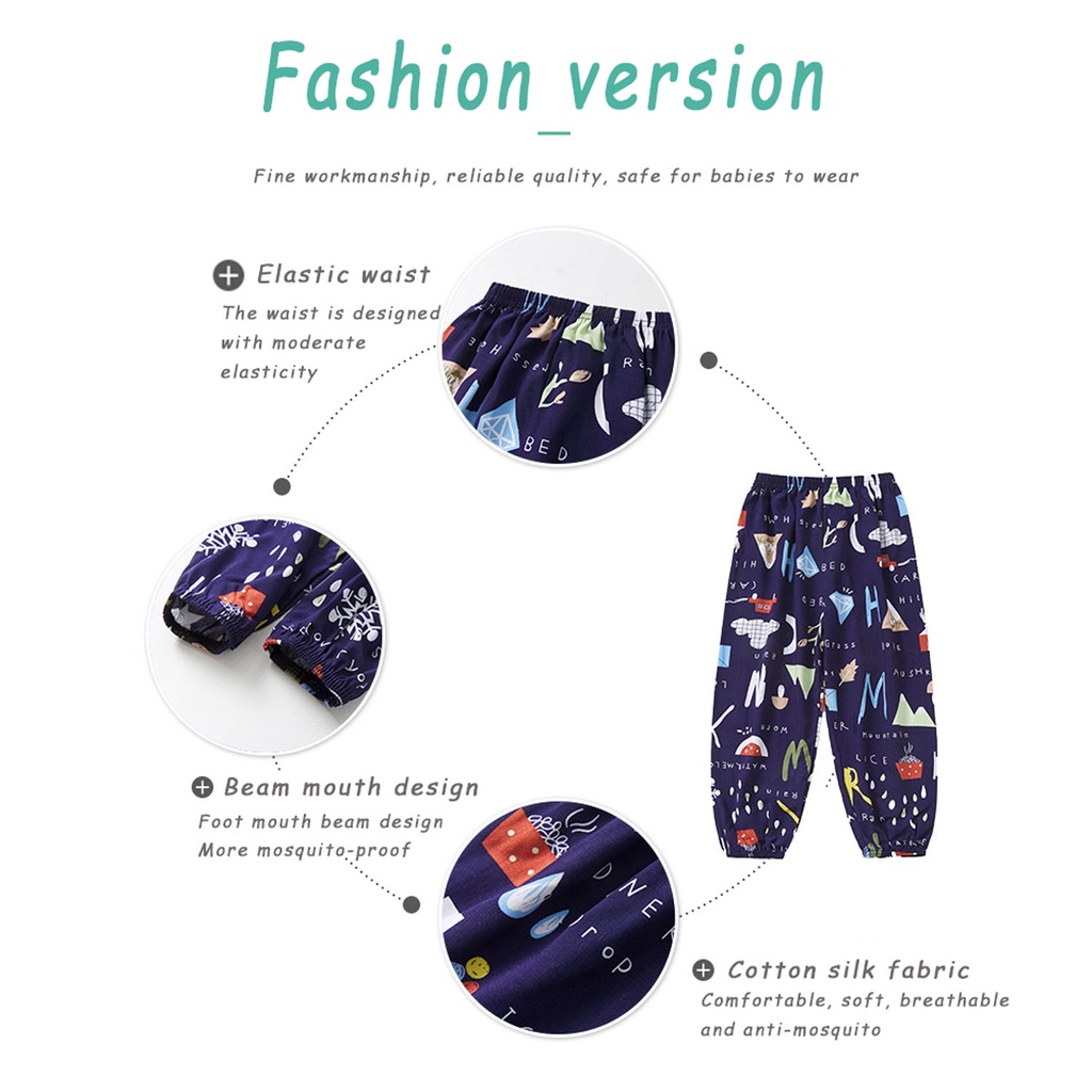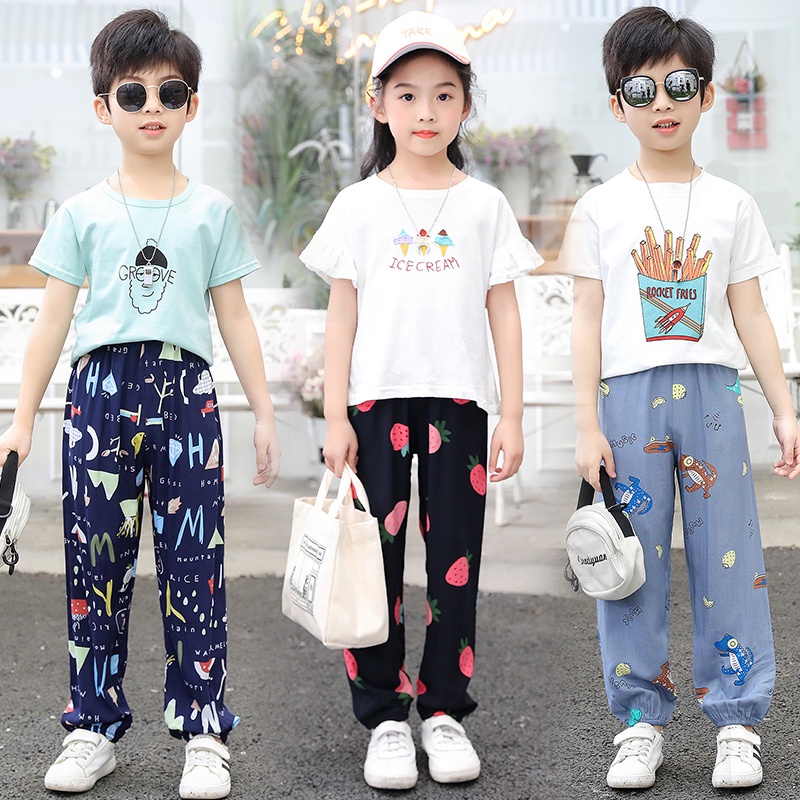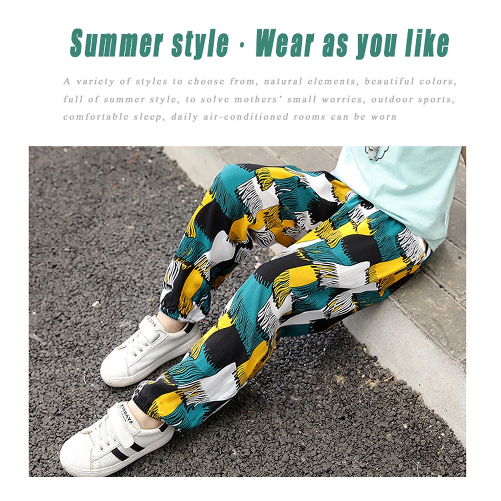 ✨2~12Y Summer Boys Girls Pants Cotton Kids Print Flower Trousers Unisex Clothing