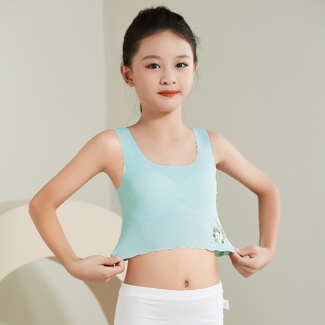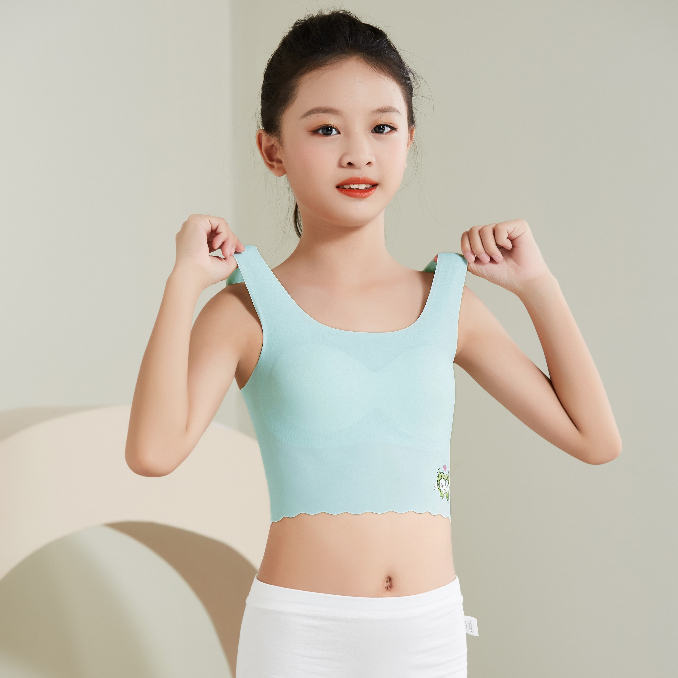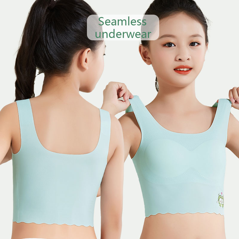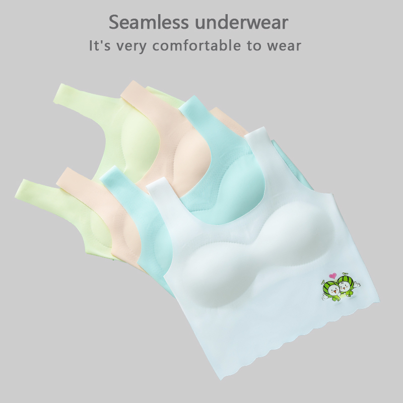 【Ready Stock】Ice Silk Seamless Girls' Underwear Developmental Girls Children's Bra Student Vest Summer Thickened Latex Pad Childrens Bras Vests