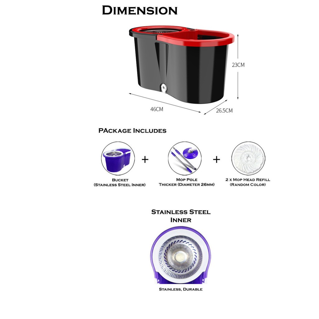 (SG STOCK) 360 Degree Spin Mop / Spin Rotate Dry Mop / Durable Stainless Steel with Pole and 2 Refills
